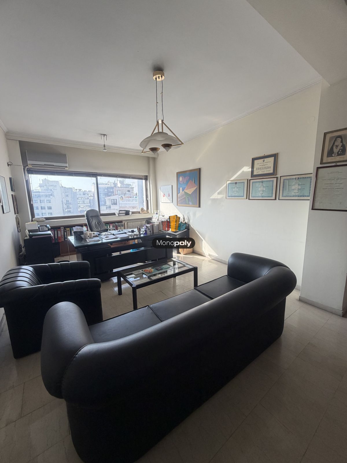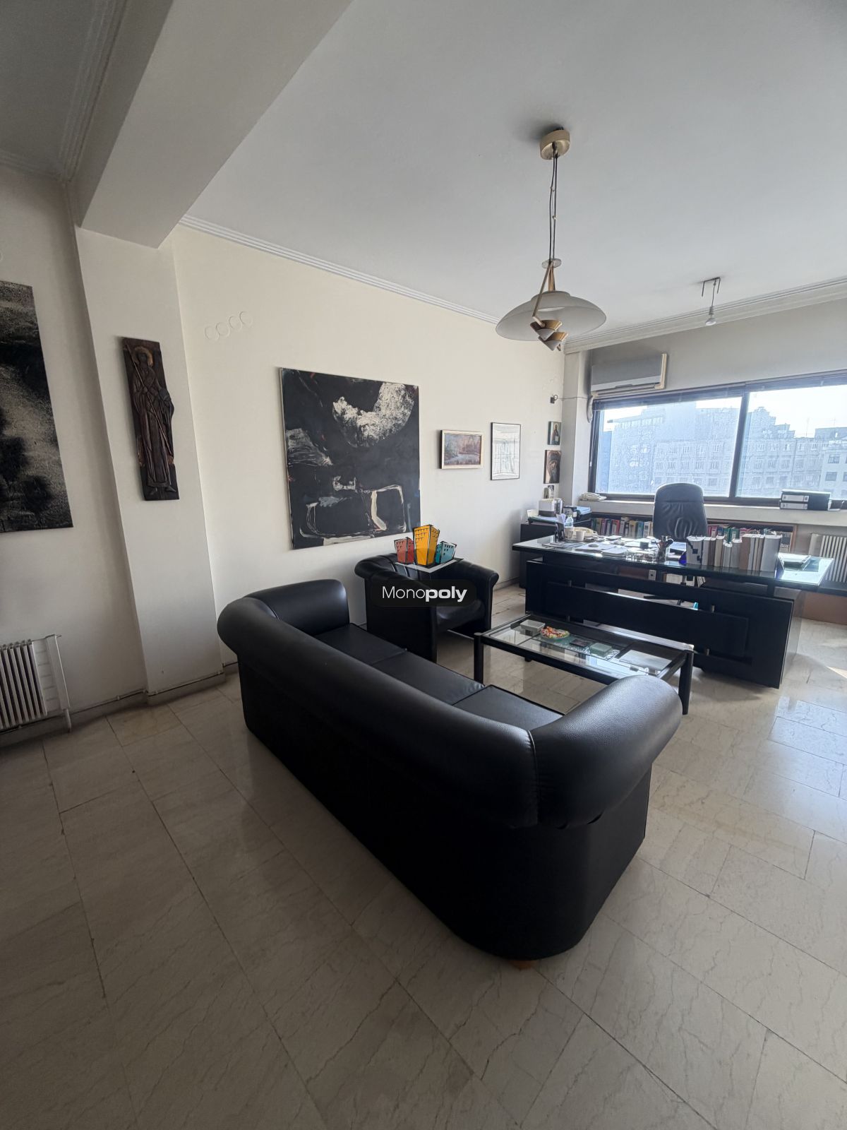 Διαθέτει κουφώματα αλουμινίου με διπλά τζάμια. Τα δάπεδα είναι από μάρμαρο.