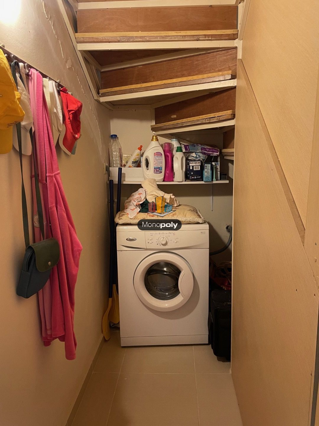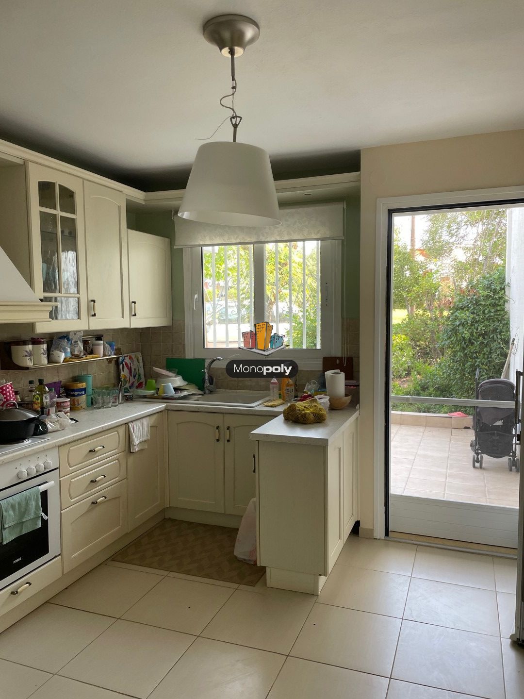 Είναι διαρρυθμισμένη σε 2 επίπεδα με εσωτερική ξύλινη σκάλα. Αποτελείται από 2 υπνοδωμάτια με ντουλάπες, σαλόνι, κουζίνα εξοπλισμένη με ηλεκτρικές συσκευές και 2 μπάνια. Επιπλέον διαθέτει κήπο, βεράντα, αποθήκη και θέση στάθμευσης.