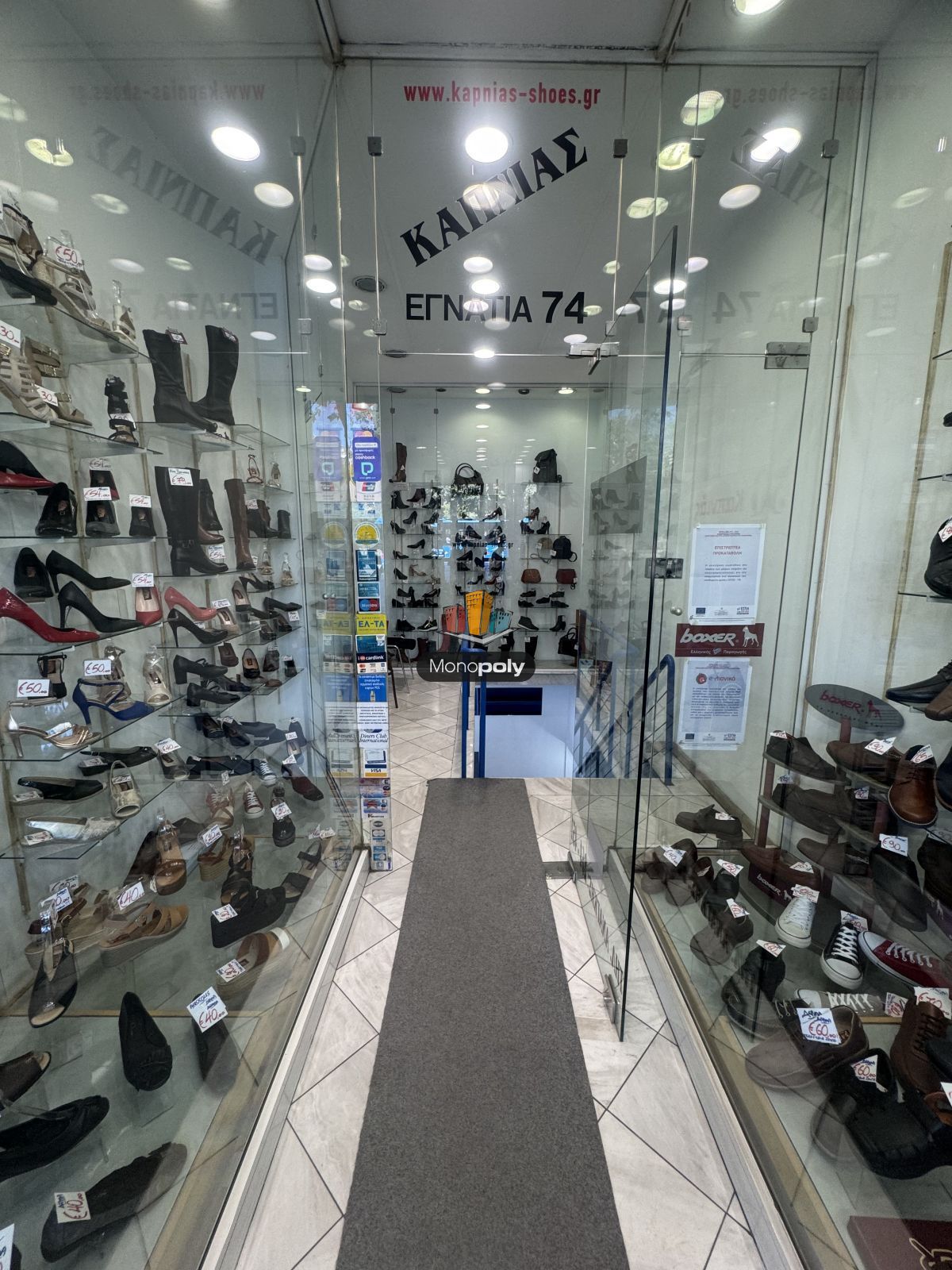 Πωλείται εμπορική επιχείρηση, λιανικής πώλησης υποδημάτων μαζί με το εμπόρευμα, σε κατάστημα 90τ.μ., στην περιοχή "Κέντρο Θεσσαλονίκης". Βρίσκεται στο ισόγειο και στο υπόγειο της οικοδομής. Κατασκευάστηκε το 1971, ενώ ανακαινίστηκε το 2000.