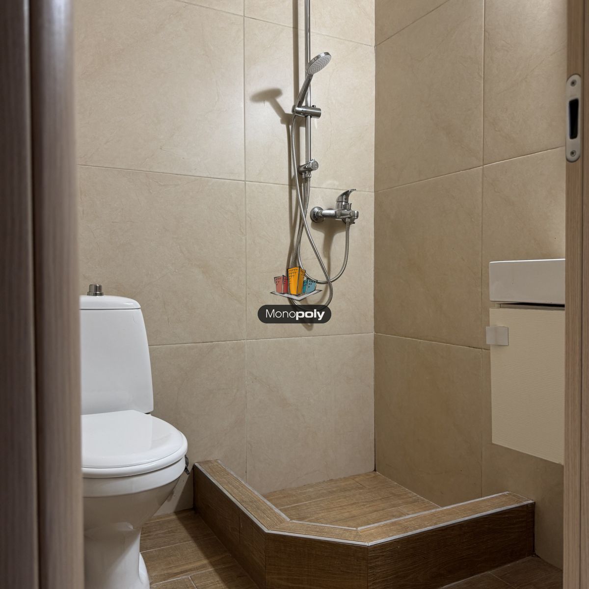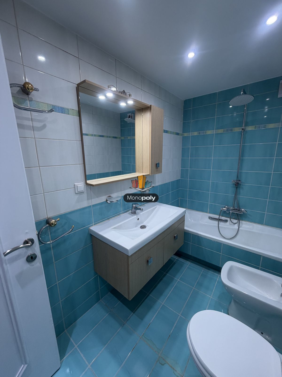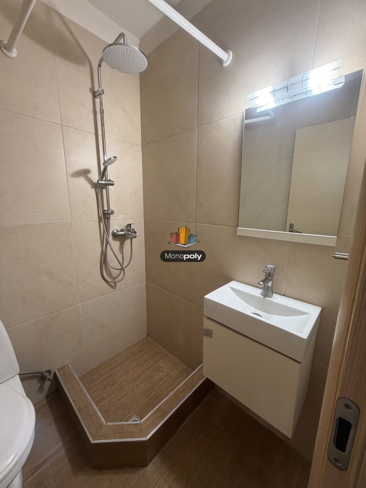 Τα πατώματα στα δωμάτια είναι ξύλινα, στα μπάνια πλακάκια, στο σαλόνι και στην κουζίνα μάρμαρο. Δίνεται με μία θέση πάρκινγκ και αν χρειάζονται οι ενδιαφερόμενοι μπορεί να διατεθεί τμήμα αποθήκης